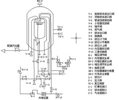 3.2.4檢查貯槽壓力是否正常,當貯槽壓力接近或等于zui高工作壓力時,須打開內筒放空閥V-13泄壓。